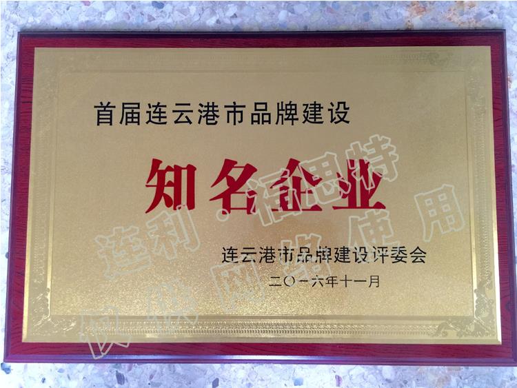 首屆連云港市品牌建設(shè)知名企業(yè)
