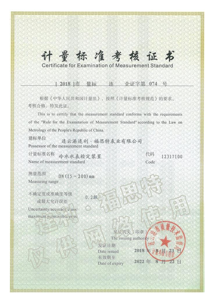 計(jì)量標(biāo)準(zhǔn)考核證書(shū)