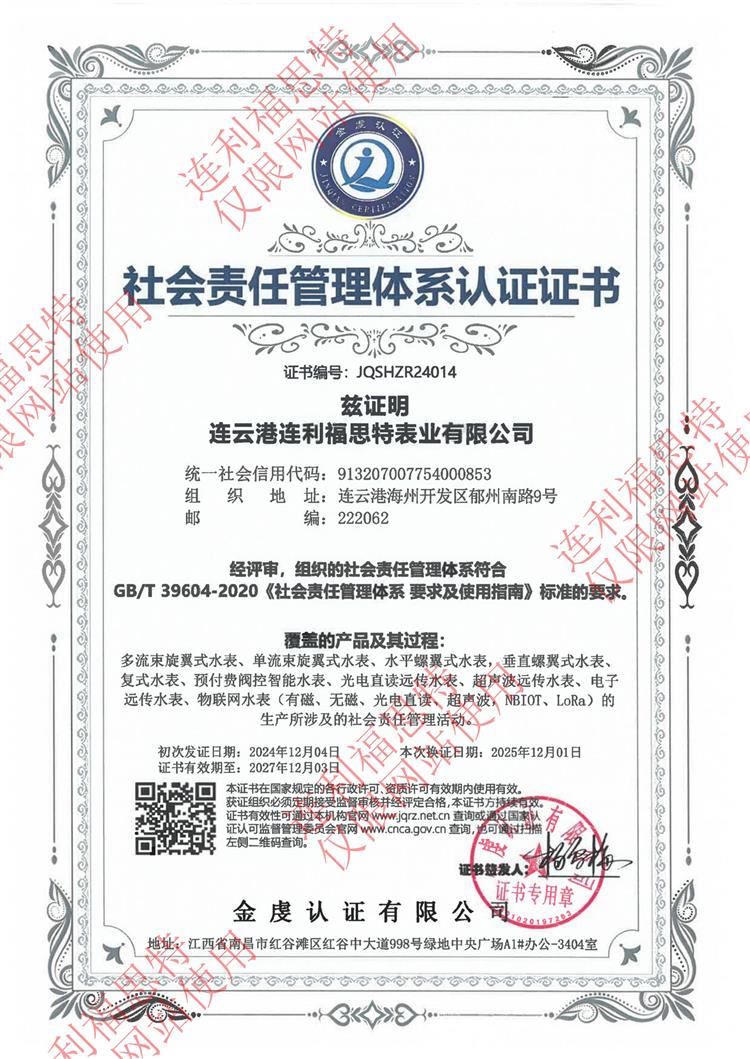 社會(huì)責(zé)任管理體系認(rèn)證證書(shū)