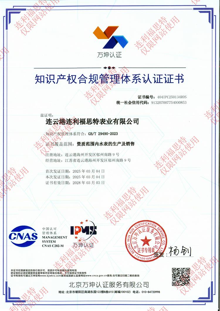 知識(shí)產(chǎn)權(quán)合規(guī)管理體系認(rèn)證證書(shū)
