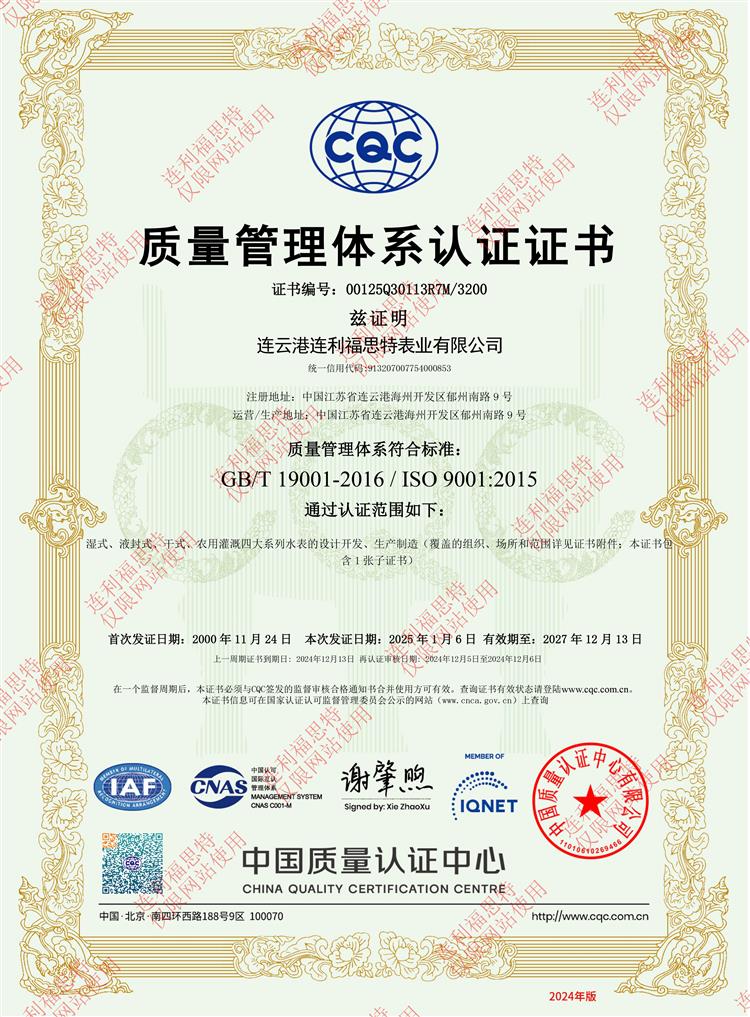 質(zhì)量管理體系認(rèn)證證書(shū)