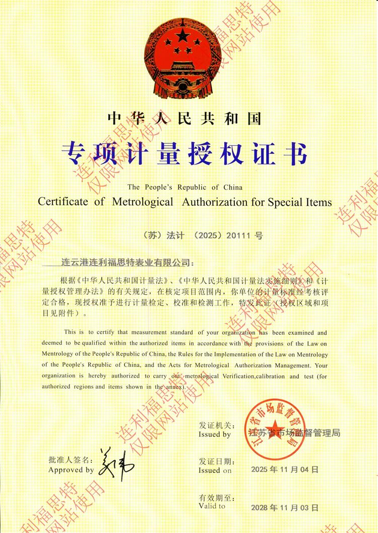 專項(xiàng)計(jì)量授權(quán)證書(shū)